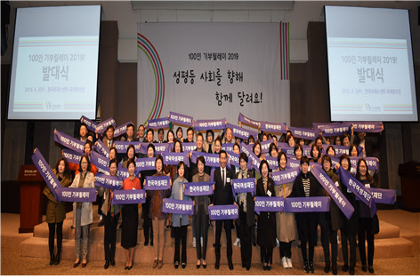 Çѱ¹¿©¼ºÀç´Ü(ÀÌÇý°æ ÀÌ»çÀå)Àº 3ÀÏ(¼ö) ¿ÀÀü 10½Ã 30ºÐ ÇÁ·¹½º¼¾ÅÍ ±¹Á¦È¸ÀÇÀå¿¡¼ ¡¯100ÀÎ ±âºÎ¸±·¹ÀÌ 2019¡® ¹ß´ë½ÄÀ» °³ÃÖÇß´Ù. 2003³âºÎÅÍ ½ÃÀÛµÈ ¡®100ÀÎ ±âºÎ¸±·¹ÀÌ¡¯´Â ½Ã¹Î¸ð±Ý°¡ÀÎ ¡®À̲ûÀÌ¡¯¸¦ Áß½ÉÀ¸·Î 4¿ù ÇÑ ´Þ µ¿¾È ´Ù¾çÇÑ ÁÖÀÚ(±âºÎÀÚ)µéÀÌ Âü¿©ÇØ ±âºÎ¸¦ À̾´Â ¸ð±ÝÄ·ÆäÀÎÀ¸·Î ÇØ´ç ±âºÎ±ÝÀº Çѱ¹¿©¼ºÀç´ÜÀÇ ¼ºÆòµî»çȸÁ¶¼º ±â±ÝÀ¸·Î »ç¿ëµÈ´Ù.