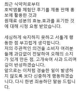 ÀÌ¿¡ ÇѼö¹ÎÀº Áö³ 9ÀÏ ÀÚ½ÅÀÇ ÀνºÅ¸±×·¥¿¡ ÃÖ±Ù ³í¶õÀÌ µÇ°í ÀÖ´Â ÇãÀ§¡¤°ú´ë±¤°í ³í¶õ¿¡ ´ëÇØ ¾ð±ÞÇß´Ù. ÇѼö¹ÎÀº ½Ä¾àó·ÎºÎÅÍ ½ÃÁ¤ ¿äÁ¤À» ¹Þ¾Ò´Ù¸ç "ÀúÀÇ ÁÖ°üÀûÀÎ ÀǰßÀ» ¼ÒºñÀÚ ¿©·¯ºÐµé²² °ú°¨¾øÀÌ Àü´ÞÇÏ¿© ¿ÀÇØÀÇ ¼ÒÁö°¡ ÀÖ°Ô ¸¸µç Á¡, °í°³ ¼÷¿© »ç°ú µå¸®¸ç ±íÀÌ ¹Ý¼ºÇϰڴÙ"°í ÀüÇß´Ù.