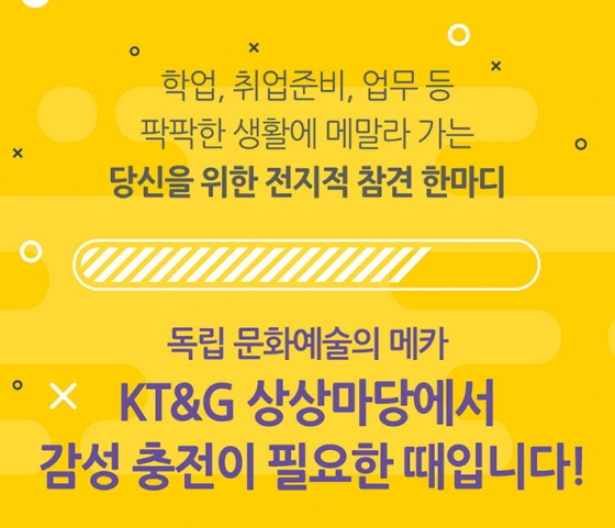 Çо÷, Ãë¾÷Áغñ, ¾÷¹« µî ÆÅÆÅÇÑ »ýȰ¿¡ ¸Þ¸»¶ó °¡´Â ´ç½ÅÀ» À§ÇÑ ÀüÁöÀû Âü°ß ÇѸ¶µð! µ¶¸³ ¹®È¿¹¼úÀÇ ¸ÞÄ« KT&G »ó»ó¸¶´ç¿¡¼ °¨¼º ÃæÀüÀÌ ÇÊ¿äÇÑ ¶§ÀÔ´Ï´Ù!