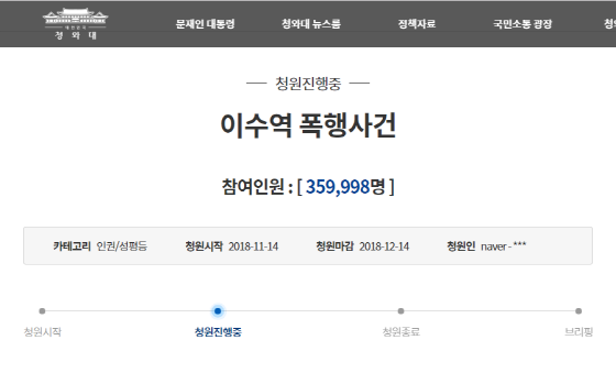 ÀÌ Ã»¿ø±ÛÀº ¿Ã¶ó¿Â Áö ÇÏ·ç ¸¸ÀÎ 15ÀÏ ¿ÀÀü 30¸¸ ¸íÀ» µ¹ÆÄÇß´Ù. û¿Í´ë Àǹ«´äº¯ ¼ýÀÚÀÎ 20¸¸ ¸íÀ» ÇÏ·ç ¸¸¿¡ ³Ñ¾î¼± °ÍÀº óÀ½ ÀÖ´Â ÀÏÀ̾ú´Ù. ÇÏÁö¸¸ ÀÌÈÄ °æÂûÀº ÀÌ »ç°ÇÀ» ¡®½Ö¹æ ÆøÇ࡯À¸·Î ÀÔ°ÇÇß°í, °æÂûÁ¶»ç¿Í CCTV ºÐ¼® ¹× ´ç»çÀÚ Áø¼ú¿¡ µû¸£¸é ½Åü Á¢ÃËÀº ¿©¼ºÀÌ ¸ÕÀú Çß°í ¼Ò¶õÀ» ÇÇ¿î °Íµµ ¸Â´Ù´Â °á°ú°¡ ³ª¿Ô´Ù. ¶ÇÇÑ À¯Æ©ºê¿¡´Â ÇÇÇØÀÚ¶ó°í ÁÖÀåÇÑ ¿©¼ºµéÀÌ ¿å¼³°ú Æø¾ðÀ» ÇÑ Á¤È²ÀÌ ³ìÈµÈ ¿µ»óÀÌ °ø°³µÇ¸é¼ ¿©ÇøÀÌ ¾Æ´Ñ ³²Çø»ç°ÇÀÌ ¾Æ´Ï³Ä´Â ¿©·ÐÀÌ µé²ú±â ½ÃÀÛÇß´Ù.
