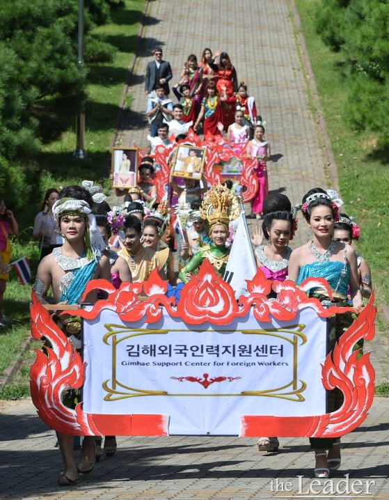 | ¿Ü±¹ÀÎ ±Ù·ÎÀÚ ÇѸ¶´ç-8¿ù 28ÀÏ ¿ÀÈÄ °æ±âµµ ¾È»ê½Ã ´Ü¿ø±¸ ¾È»êÈ£¼ö°ø¿ø¿¡¼ ¿¸° 2016 ¿Ü±¹ÀÎ ±Ù·ÎÀÚ ÇѸ¶´ç¿¡¼ Âü°¡ÀÚµéÀÌ ÀüÅëÀÇ»óÀ» ÀÔ°í ÆÛ·¹À̵带 Çϰí ÀÖ´Ù. (»çÁø=´º½º1) |