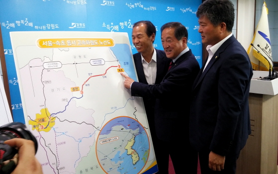| À̺´¼± ¼ÓÃʽÃÀåÀÌ °¿øµµÃ» ±âÀÚȸ°ß¿¡¼ ¼¿ï~¼ÓÃÊ µ¿¼°í¼ÓÈöµµ »ç¾÷ ³ë¼±µµ¸¦ ¼³¸íÇϰí ÀÖ´Ù. |