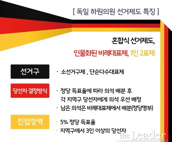 µ¶ÀÏÀÇ ¿¬¹æ ÇÏ¿ø ¼±°ÅÁ¦µµ´Â ¼Ò¼±°Å±¸ ´Ü¼ø ´Ù¼ö´ëÇ¥Á¦¿Í ÁÖ(ñ¶) ¸íºÎ¿¡ ÀÇÇÑ ´ë¼±°Å±¸ ºñ·Ê´ëÇ¥Á¦¸¦ º´ÇàÇÑ Á¦µµÀÌ´Ù. µ¶ÀÏÀÇ ¿¬¹æ ÇÏ¿ø Á¤¿øÀº 598¸íÀε¥, °æ¿ì¿¡ µû¶ó ÀÇ¿ø Á¤¼ö´Â ´Ã¾î³¯ ¼ö ÀÖ´Ù. Àüü ÀǼ® °¡¿îµ¥ 299¼®Àº ´Ü¼ø ´Ù¼ö´ëÇ¥Á¦ ¹æ½ÄÀ¸·Î ¼±ÃâµÇ°í, 299¼®Àº ÁÖ(ñ¶) ´ÜÀ§·Î ÀÛ¼ºµÈ Á¤´ç ¸íºÎ¿¡ µû¶ó ºñ·Ê´ëÇ¥Á¦·Î ¼±ÃâµÇ´Â ¹æ½ÄÀÌ´Ù. ÀÌ·¯ÇÑ µ¶ÀÏÀÇ ¼±°ÅÁ¦µµ¸¦ ¡®È¥ÇÕÇü ºñ·Ê´ëÇ¥Á¦µµ¡¯, ¡®Àι°È µÈ ºñ·Ê´ëÇ¥Á¦¡¯¶ó°í ĪÇÑ´Ù.