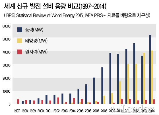 ¢º¡°Å»¿øÀüÀº ¹®ÀçÀÎ Á¤ºÎ°¡ 40³â ³»·Î ÇÑ´Ù°í ¹ßÇ¥¸¦ Çß´Ù. 40³â »çÀÌ¿¡ ¿øÀüÀ» ¼¼È÷ ÁÙÀ̰í Àç»ý¿¡³ÊÁö¸¦ ´Ã¸®¸é °¡´ÉÇÏ´Ù°í º»´Ù. Àü ¼¼°è Åë°è¸¦ »ìÆìº¸¸é Áö±Ý ÇöÀç Àü ¼¼°è Àü±â »ý»êÀÇ 25% °¡ Àç»ý¿¡³ÊÁö°í, 10%°¡ ¿øÀÚ·ÂÀÌ´Ù. Àç»ý¿¡³ÊÁö°¡ ¿øÀÚ·ÂÀÇ 2.5¹è¿¡ À̸¥´Ù. Àç»ý¿¡³ÊÁö´Â ±²ÀåÈ÷ ºü¸£°Ô Áõ°¡Çϰí ÀÖ´Ù. ¹Ý¸é¿¡ ¿øÀÚ·ÂÀº 30³â° ±× ÀÚ¸®¿¡ ÀÖÀ¸¸ç ¾ÕÀ¸·Î´Â Ãà¼Ò°¡ ¿¹»óµÈ´Ù. ¿ì¸®°¡ ¼¼°è Æò±Õ¸¸ µû¶ó°¬´õ¶óµµ ¿ì¸®³ª¶ó´Â 30%°¡ ¿øÀüÀ̰í 0.6%°¡ Àç»ý¿¡³ÊÁö´Ù. Àç»ý¿¡³ÊÁö¸¦ ¾ó¸¶³ª ¾²°í ÀÖ´ÂÁö Åë°èÁ¶Â÷ ³ª¿ÀÁö ¾Ê´Â´Ù. ¼¼°è Æò±Õ¸¸ µû¶ó°¡µµ ÁÁ¾Ò´Âµ¥ ³Ê¹« ¿øÀü¸¸ ¹Ù¶óº¸°í ÀÖ¾ú´Ù.¡±