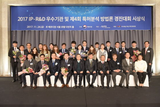 | 11¿ù 24ÀÏ ¼¿ï ¸£ ¸Þ¸£µð¾Ó È£ÅÚ ´ÙºóġȦ¿¡¼ ¿¸° '2017 IP-R&D ¿ì¼ö±â°ü ¹× Á¦4ȸ ƯÇãºÐ¼® ¹æ¹ý·Ð °æÁø´ëȸ ½Ã»ó½Ä'¿¡¼ ¼ö»óÀÚµéÀÌ ´Üü»çÁøÀ» Âï°í ÀÖ´Ù. /»çÁøÁ¦°ø=Çѱ¹Æ¯ÇãÀü·«°³¹ß¿ø |