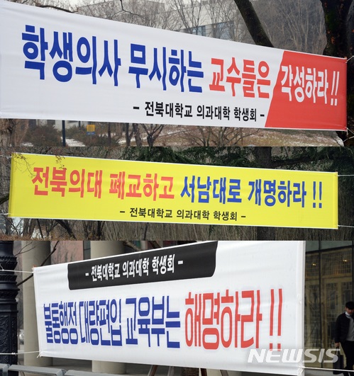 ÀüºÏ´ë ÀÇ´ë»ýµéÀº "¼³²´ë´Â 2010³â ÃʹݺÎÅÍ ºÎ½Ç´ëÇÐÀ¸·Î ²÷ÀÓ¾øÀÌ ¼±Á¤µÆ°í ÀÌ·¯ÇÑ È¯°æ¿¡¼ ±³À°À» ¹Þ¾Æ¿Â ¼³²´ë ÀÇ´ë ÇлýµéÀÌ °°Àº ÇгâÀÇ ÀüºÏ´ë ÀÇ´ë Çлýµé°ú µ¿ÀÏÇÑ ±³À°À» ¹ÞÀ» ÀÚ°ÝÀÌ ÀÖ´ÂÁö Æò°¡¹Þ¾Æ¾ß ÇÑ´Ù"¸ç "ÆíÀÔ¿¡ ¾Õ¼ ÆíÀÔ»ýµé¿¡ ´ëÇØ °´°üÀû ÁöÇ¥¿¡ ÀÇÇÑ ÇнÀ ÀÚ°Ý °ËÁõÀÌ ÀÌ·ïÁ®¾ß ÇÑ´Ù"°í ¸ñ¼Ò¸®¸¦ ³ô¿´´Ù.