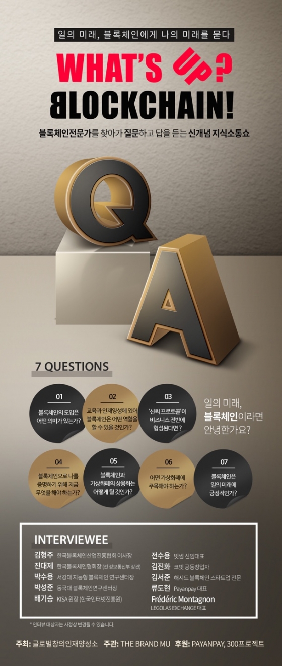 ºí·ÏüÀÎ Àü¹®°¡¸¦ ã¾Æ°¡ ºí·ÏüÀÎÀÇ °¡Ä¡¿Í ºí·ÏüÀÎÀ» ÅëÇØ º¯ÈÇÒ ¼¼»óÀÇ ¸ð½À¿¡ ´ëÇØ Áú¹®Çϰí, ´äÀ» µè´Â ½Å°³³ä Áö½Ä ¼ÒÅë¼î ¡®what¡¯s up¡¯ÀÌ ·±ÄªÇÑ´Ù.