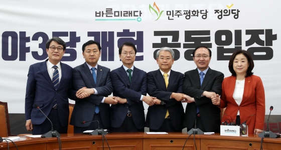 ¹Ù¸¥¹Ì·¡´ç•ÆòÈ´ç•Á¤ÀÇ´çÀº ¡®¾ß 3´ç °³Ç忬´ë¡¯¸¦ ¸¸µé°í ¿©´ç°ú Á¦1¾ß´çÀ» ¾Ð¹ÚÇß´Ù. À̵éÀº Áö³´Þ 6¿ù °³Çå ÅõÇ¥°¡ ÁÂÃʵÇÀÚ ¡°ºü¸¥ ½ÃÀÏ ³»¿¡ ±¹È¸ ÁÖµµÀÇ °³ÇåÀ» ¹Ýµå½Ã ¼º»ç½ÃÄÑ¾ß ÇÑ´Ù¡±´Â ÀÔÀåÀ» ¹ßÇ¥Çß´Ù. ¾ß3´çÀº ¿¬µ¿Çü ºñ·Ê´ëÇ¥Á¦ µµÀÔÀ» °ÇÏ°Ô ¹Ð¾îºÙÀ̰í ÀÖ´Ù.