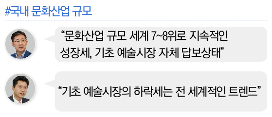 ¢º¹Ú: Å©°Ô ±¸ºÐÇØ¼ ¹®È»ê¾÷°ú ±âÃÊ¿¹¼úÀº ±²ÀåÈ÷ ´Ù¸¥ ¾ç»óÀÌ´Ù. ¿©·¯ ¾ÇÀç ¼Ó¿¡¼µµ ¹®È»ê¾÷ÀÇ ±Ô¸ð´Â Áö¼ÓÀûÀÎ ¼ºÀå¼¼´Ù. ÄÜÅÙÃ÷ÁøÈï¿øÀÇ 2015³â Åë°è¿¡ ÀÇÇϸé 100% ¼ºÀåÀ» Çß°í 2017³âµµ´Â Åë°è°¡ ¾ÆÁ÷ ³ª¿ÀÁö ¾Ê¾ÒÁö¸¸ ½ÃÀå±Ô¸ð°¡ 100Á¶ ¿øÀ» ³ÑÀ» °ÍÀ¸·Î ¿¹»óÇÑ´Ù. ¼¼°è ¹®È»ê¾÷ÀÌ 2400Á¶ ¿ø ÀÌ»óÀÇ ±Ô¸ðÀε¥ ¿ì¸® ½ÃÀåÀÌ 100Á¶ ¿øÀÌ¸é ¼¼°è 7~8À§ Á¤µµ¿¡ ¿À¸¦ ¸¸Å ÄÜÅÙÃ÷ °±¹À̶ó°í ÇÒ ¼ö ÀÖ´Ù.