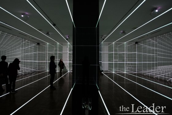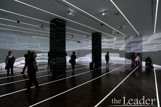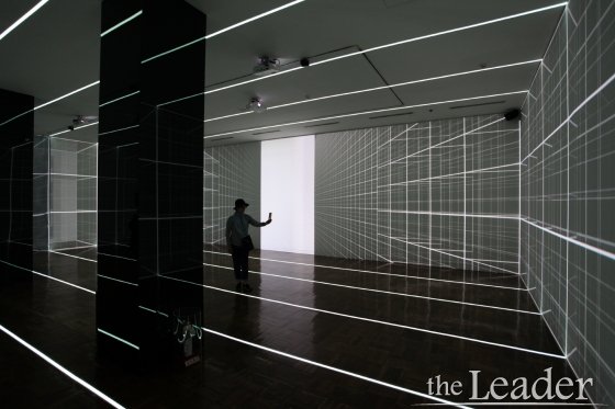 ÇÏ ÀÛ°¡´Â ¡°°ü°´Àº ÀÛǰÀ» ´Ü¼øÈ÷ ´ë»óÀ¸·Î ¹Ù¶óº¸´Â °ÍÀ» ³Ñ¾î ÀÛǰ ¾ÈÀ¸·Î µé¾î¿Í °¡»ó(VR)°ú ½ÇÁ¦ÀÇ °ÇÃà°ø°£ÀÌ È¥ÇÕµÈ ÀÏÁ¾ÀÇ È¥ÇÕÇö½Ç(MR)Àû °æÇèÀ» ÇÏ°Ô µÈ´Ù¡±¶ó¸ç, ¡°ÀÌ·± °ø°£Àû È¿°ú¸¦ ¾ò±â À§ÇØ Åõ½Ãµµ ±â¹ý°ú ÇÔ²² °¡»ó°ú ½ÇÁ¦ÀÇ °ø°£À» ¿¬°èÇÏ´Â ¸Å°³Ã¼ÀÎ ½ÇÁ¦ °ø°£ÀÇ ¶óÀÎLED¸¦ ¿µ»ó°ú ¿¬µ¿½ÃÄ×´Ù.¡±¶ó°í ÀÛǰ¿¡ ´ëÇØ ¼Ò°³Çß´Ù.