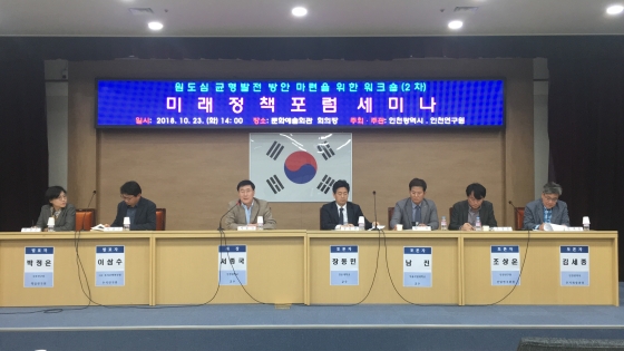 Åä·Ðȸ¿¡¼´Â ¡°ÀÎõ±¤¿ª½Ã ¿øµµ½É±ÕÇü¹ßÀü¹æ¾ÈÀÇ ÁÖ¿ä¹æÇâ(±¹Å俬±¸¿ø ¹ÚÁ¤Àº Ã¥ÀÓ¿¬±¸¿ø)¡±°ú ¡°¿øµµ½É Ȱ¼ºÈ¸¦ À§ÇÑ ÀÎõÀÇ µµ½ÃÀç»ý ¹æÇâ(LHÅäÁöÁÖÅÿ¬±¸¿ø ÀÌ»ï¼ö ¼ö¼®¿¬±¸¿ø)¡±¿¡ ´ëÇÑ ÁÖÁ¦¸¦ ¹ßÇ¥ÇÏ¿´À¸¸ç ÁøÇàÀº ¼Á¾±¹ ÀÎõ´ëÇб³ ±³¼ö, ÀÎõ½Ã µµ½ÃÀç»ý¹æÇâ ¼ö¸³¿¡ ´ëÇÑ Åä·ÐÀº À嵿¹Î û¿î´ëÇб³ ±³¼ö, ³²Áø ¼¿ï½Ã¸³´ëÇб³ ±³¼ö, Á¶»ó¿î ÀÎõ¿¬±¸¿ø ¼±ÀÓ¿¬±¸À§¿ø, ±è¼¼Á¾ ÀÎõ±¤¿ª½Ã ÁÖ°ÅÀç»ý°úÀåÀÌ Âü¿©Çß´Ù.