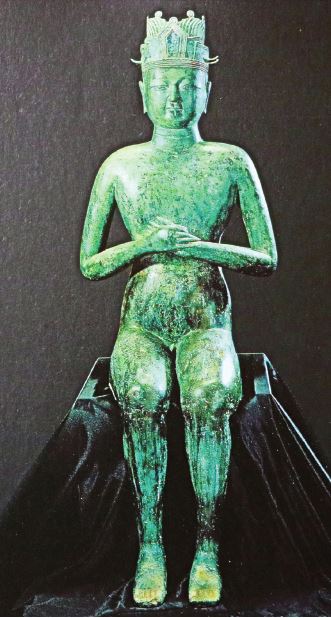 | ¡ã951³â¿¡ ûµ¿À¸·Î Á¦ÀÛµÈ ¿Õ°Ç»óÀ¸·Î, ÀÇÀÚ¿¡ ¾É¾Æ ȲÁ¦¸¦ »ó¡ÇÏ´Â Åëõ°üÀ» ¾²°í ÀÖ´Ù. º»·¡´Â Ȳ±Ý»ö ºñ´Ü¿ÊÀ» °ÉÃÄ ÀÔ°í ÀÖ¾úÀ¸³ª ÇöÀç´Â ¹ú°Å¹þÀº ¸ð½À ÀÌ´Ù. ½Ç¹°¿¡ °¡±î¿î ³ôÀÌ 138.3§¯ Å©±â´Ù. /»çÁø=±è¿ë¸¸ Á¦°ø |