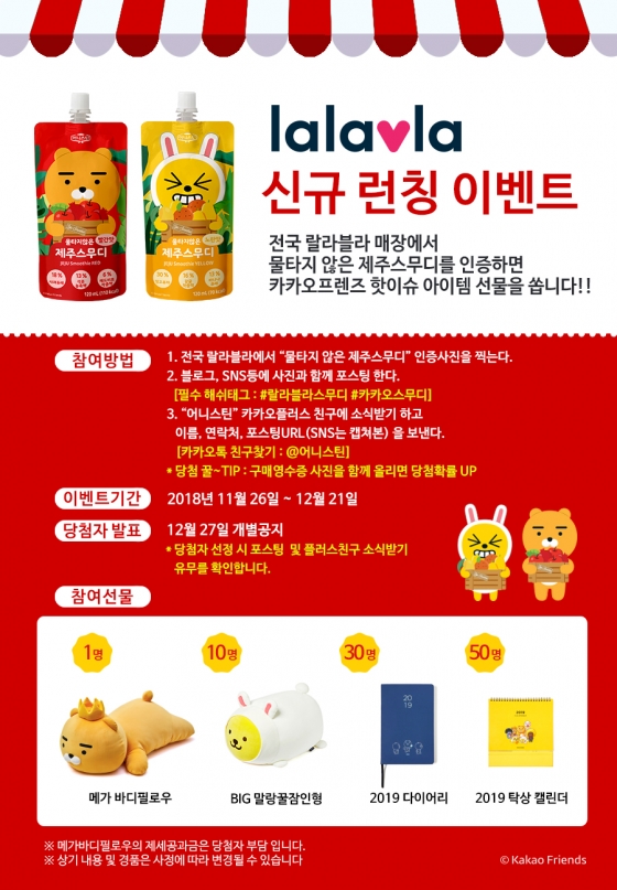 ¡®¹°Å¸Áö ¾ÊÀº Á¦ÁÖ½º¹«µð¡¯´Â Àü±¹ GS¸®Å×ÀÏ ¶ö¶óºí¶ó(±¸ ¿Ó½¼½º) ¸ÅÀå¿¡¼ 11¿ù26ÀϺÎÅÍ ¼øÂ÷ÀûÀ¸·Î ¸¸³ªº¼ ¼ö ÀÖÀ¸¸ç, ·±Äª ¹× Áö¿¡½º¸®Å×ÀÏ ¶ö¶óºí¶ó ÀÔÁ¡À» ±â³ägo ¡®¶óÀ̾ð ¸Þ°¡¹ÙµðÇʷο졯, ¡®¸®Æ² ¹«Áö BIG¸»¶û²ÜÀáÀÎÇü¡¯ µî īī¿ÀÇÁ·»ÁîÀÇ Àαâ»óǰÀ» ¼±¹°·Î ¹Þ¾Æº¼ ¼ö ÀÖ´Ù.
