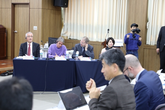 | ¡ãÁ¦14ȸ ¹ÎÁֽùα³À° ±¹Á¦ ½ÉÆ÷Áö¾ö ¼¼¼Ç1-2(¿ÞÂʺÎÅÍ Reinhard Fischer, Sven Schwersensky, Jorg Michael Dostal, ÀÌÁ¾Èñ)°¡ ÁøÇàµÇ°í ÀÖ´Ù./»çÁø=¼±°Å¿¬¼ö¿ø Á¦°ø |