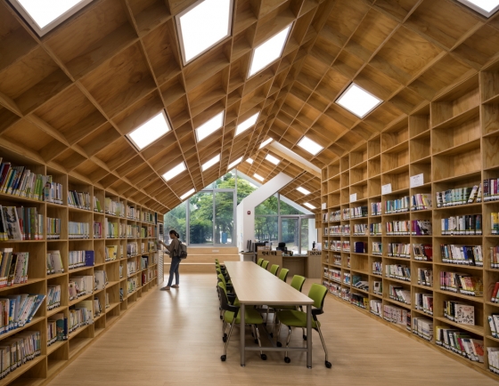 ¢ºº¸Åë °ÇÃàÀº °Ç¹°ÀÇ ¿ÜºÎ ÇüŸ¦ Á¤ÇÏ°í ±×¿¡ ¸ÂÃç ³»ºÎ °ø°£À» °áÁ¤ÇÑ´Ù. ¿©±â±îÁö°¡ °ÇÃàÀÌ°í ³»ºÎ Áý±â¿Í °¡±¸ µîÀº ÀÎÅ׸®¾îÀÇ ¿µ¿ªÀ̶ó°í ¿©±ä´Ù. ÇÏÁö¸¸ Çѳ» ÁöÇýÀÇ ½£Àº µµ¼°üÀÇ °¡Àå Áß¿äÇÑ ÀÎÅ׸®¾î °¡±¸ÀΠå²ÈÀÌ(ÃÖ´Ù 1¸¸5000±Ç ¼ÒÀå °¡´É)ºÎÅÍ µðÀÚÀÎÀ» ½ÃÀÛÇØ À̸¦ ¹Ù´Ú°ú õÀåÀ¸·Î È®Àå½ÃŰ°í ±×¿¡ ¸ÂÃç ¹Ú°øÁöºØ ÇüÅÂÀÇ ¿Ü°üÀ» °áÁ¤Çß´Ù. º®°ú Ã¥²ÈÀÌ ±¸Á¶¿Í õÀåÀÌ ¸ðµÎ ÇÕüµÈ ÅëÇÕµÈ °ø°£ ±¸Á¶¸¦ °¡Áø´Ù.