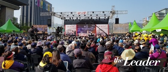 ½ÄÀüÇà»ç·Î 4¡¤19Çõ¸í È«º¸¸¦ À§ÇÑ ÃâÁ¤½ÄÀ¸·Î ¡®ÆÈµµÇ°¹Ù¡¯°ø¿¬ÀÌ ÆîÃÄÁ³°í ¿ÀÈÄ2½ÃºÎÅÍ ¡®4¡¤19Çõ¸í ¼¼°è 4´ë ¹ÎÁÖÇõ¸í ´ëÇàÁø ¹ÎÁÖÈ¡¤»ê¾÷È À¶ÇÕÀÇ ´ëÃàÁ¦¡¯°¡ ÁøÇàµÇ¾ú´Ù.