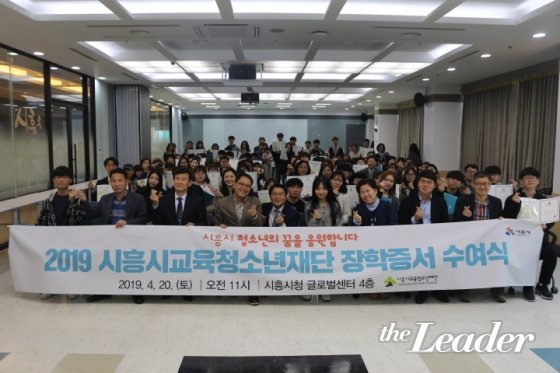 2019³â Á¤±ÔÀåÇлý 142¸í¿¡°Ô 3¾ï 2õ¿©¸¸¿øÀÇ ÀåÇбÝ(°íµîÇлý: 1³â ¼ö¾÷·á Àü¾×/ ´ëÇлý: 3¹é¸¸¿ø)ÀÌ Áö±ÞµÉ ¿¹Á¤À̸ç, À̳¯ ÀåÇÐÁõ¼ ¼ö¿©½Ä¿¡´Â 2019³â ÀåÇлý°ú °¡Á· 130¿©¸íÀÌ Âü¼®ÇÑ °¡¿îµ¥, ÀÓº´Åà ¸í¿¹ÀÌ»çÀå(½ÃÈï½ÃÀå)°ú Àç´Ü ÀÓÁ÷¿øÀÌ 2018³â ÀåÇбâ±Ý ±âŹÀÚ Àü¿øÀÇ À̸§ÀÌ »õ°ÜÁø ÀåÇÐÁõ¼¸¦ ¼ö¿©ÇÏ°í °Ý·ÁÇÏ¿´´Ù.