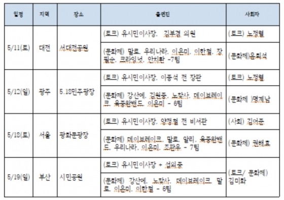 Àü±¹ 4°³ ±Ç¿ª¿¡¼ ÆîÃÄÁú ½Ã¹Î¹®ÈÁ¦´Â ´ëÀü(11ÀÏ, ¼´ëÀü°ø¿ø)À» ½ÃÀÛÀ¸·Î ±¤ÁÖ(12ÀÏ, 5.18¹ÎÁÖ±¤Àå), ¼¿ï(18ÀÏ, ±¤È¹®±¤Àå), ºÎ»ê(19ÀÏ, ½Ã¹Î°ø¿ø)¿¡¼ ½Ã¹Î ¸ðµÎ°¡ Âü¿©ÇÏ´Â ¿¬´ë¿Í ¼ÒÅëÀÇ ÀåÀ¸·Î ¸¶·ÃµÈ´Ù. ³· ½Ã°£¿¡´Â üÇ衤³ª´® ºÎ½º¿Í Àü½Ã µîÀÌ, Àú³á 6½ÃºÎÅÍ´Â ÅäÅ©ÄܼƮ¿Í ¹®È°ø¿¬ÀÌ À̾îÁø´Ù.