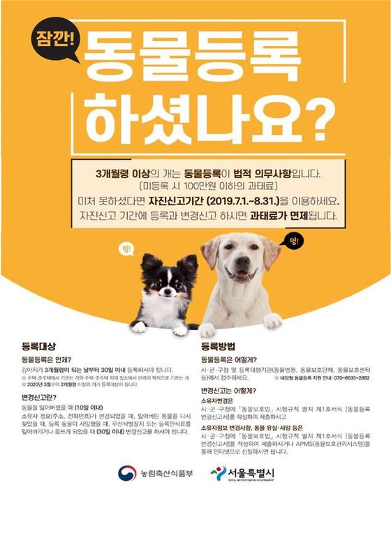 ÀÚÁø½Å°í´Â ¿À´Â 8¿ù31ÀϱîÁö´Ù. ÀÌÈĺÎÅÍ´Â µ¿¹°¹Ìµî·ÏÀÚ ¹× µ¿¹° Á¤º¸ º¯°æ ¹Ì½Å°íÀÚ´Â °úÅ·Ḧ ¹°°Ô µÈ´Ù.