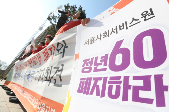 4¿ù 2ÀÏ ¿ÀÈÄ ¼­¿ï Áß±¸ ½Ãû ¾Õ¿¡¼­ ¹ÎÁÖ³ëÃÑ ¼­ºñ½º¿¬¸Í Àü±¹¿ä¾ç¼­ºñ½º³ëµ¿Á¶ÇÕ ÁÖÃÖ·Î ¡®¼­¿ï»çȸ¼­ºñ½º¿ø Á¤³â 60¼¼ ÆóÁö¿Í ó¿ì°³¼±ºñ ¿ø»óȸº¹ Ã˱¸ ±âÀÚȸ°ß¡¯ÀÌ ¿­¸®°í ÀÖ´Ù./»çÁø=´º½Ã½º