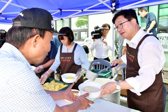 ¿° ½ÃÀåÀº Åýó뵿ÀÚµéÀÇ ³ë°í¸¦ °Ý·ÁÇϰí, ¡°¿©¸§Ã¶¿¡ °Ç°°ü¸®¸¦ Àß ÇÏ½Ã¶ó¡±°í ´çºÎÇß´Ù. ¹è½Ä ºÀ»ç ÈÄ ÇÔ²² ½Ä»çÇϸç Åýó뵿ÀÚÀÇ ¾Ö·Î»çÇ×À» µé¾ú´Ù.