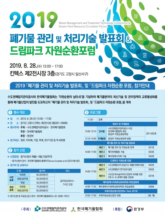 ¼öµµ±Ç¸Å¸³Áö°ü¸®°ø»ç(»çÀå ¼ÁÖ¿ø )¿Í Çѱ¹Æó±â¹°Çùȸ(ȸÀå ¿À±æÁ¾)´Â ¡®ÀÚ¿ø¼øÈ¯ÀÇ ³¯(9.6)¡¯À» ±â³äÇØ Æó±â¹°ºÐ¾ßÀÇ Ãֽűâ¼ú ¹× °ü¸®Á¤Ã¥ÀÇ ±³·ù Ȱ¼ºÈ¸¦ ÅëÇØ Æó±â¹°»ê¾÷ÀÇ ¹ßÀüÀ» µµ¸ðÇϰíÀÚ ¡¸Æó±â¹° °ü¸® ¹× 󸮱â¼ú ¹ßǥȸ¡¹ ¹× ¡¸µå¸²ÆÄÅ© ÀÚ¿ø¼øÈ¯ Æ÷·³¡¹À» °øµ¿ °³ÃÖÇÑ´Ù.