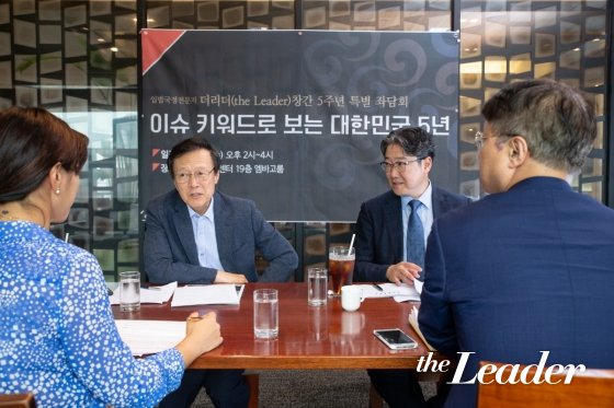 | ¡ã<´õ¸®´õ>â°£ 5ÁÖ³â Æ¯Áý "À̽´ Ű¿öµå·Î º¸´Â ´ëÇѹα¹ 5³â Ưº° Á´ãȸ"°¡ Çѱ¹ÇÁ·¹½ºÅ¬·´ ¿¥¹Ù°í·ë¿¡¼ ÁøÇàµÇ°í ÀÖ´Ù. ¿ÞÂʺÎÅÍ ÀÓÀ±Èñ ±âÀÚ, ÃÖâ·Ä ¿ëÀÎ´ë ±³¼ö, ÀÌÅüö ¸®¾ó¹ÌÅÍ ´ëÇ¥, ÀÌÁ¾±Ù ½Ã»çÆò·Ð°¡/»çÁø=´õ¸®´õ |