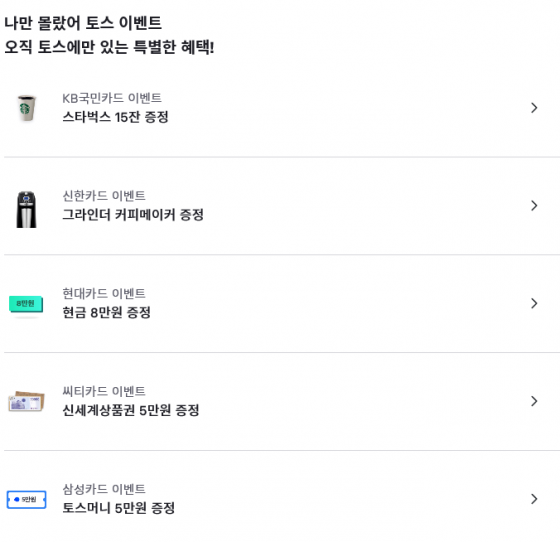 KB±¹¹ÎÄ«µå 2Á¾·ùÀÇ Ä«µå¸¦ ¹ß±Þ ÈÄ 10¸¸¿øÀ» »ç¿ëÇÏ¸é ½ºÅ¸¹÷½º ¾Æ¸Þ¸®Ä«³ë¸¦ 15ÀÜÀ», ½ÅÇÑÄ«µå 2Á¾·ù Áß 5¸¸¿ø ÀÌ»ó »ç¿ë½Ã ÇöÀç ¿Â¶óÀÎ ¼îÇθô¿¡¼ 29¸¸¿ø¿¡ ÆÇ¸ÅÇϰí ÀÖ´Â ÀÚÀÏ·º ±Û¶óÀδõ Ä¿ÇǸÞÀÌÄ¿¸¦ ÁõÁ¤ÇÑ´Ù.