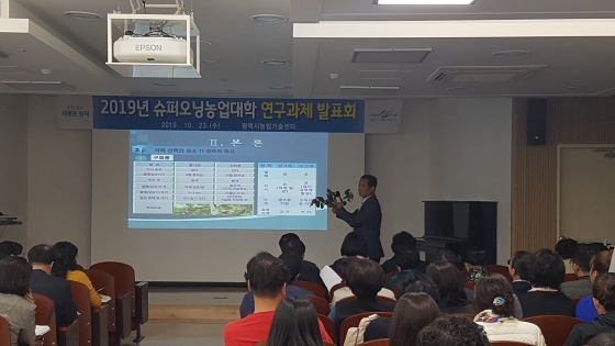 ½Ã °ü°èÀÚ´Â ¡°½´ÆÛ¿À´×³ó¾÷´ëÇÐ ¿¬±¸°úÁ¦ ¹ßÇ¥´Â 1³â°£ÀÇ Çлç°úÁ¤À» ¸¶¹«¸®ÇÏ¸é¼ °¢ Çаúº° Àü°øºÐ¾ß¿¡ ´ëÇÑ Àü¹®¼ºÀ» ´ÙÁú ¼ö ÀÖ´Â ±âȸ°¡ µÆ´Ù¡±¸ç, ¡°¿ÃÇØ´Â ƯÈ÷ ³ó»ê¹°°¡°ø°úÀÇ °æ¿ì »õ·Ó°Ô °³ÆíµÈ ±³À°°úÁ¤¿¡ ¸ÂÃç Áö¿ªÀÇ ³ó»ê¹°À» Ȱ¿ëÇÑ °¡°øÇ°À» ½ÃÁ¦Ç°À¸·Î °³¹ßÇÏ¿© Àü½Ãµµ ÇÔ²² ÇÔÀ¸·Î½á ³ó¾÷´ëÇÐ ±³À°°úÁ¤À» ÅëÇÑ °á°ú¸¦ ÆòÅýà ³ó¾÷Á¤Ã¥ »ç¾÷À¸·Îµµ ¿¬°á ÁöÀ» ¼ö ÀÖ´Â Åä´ë¸¦ ¸¶·ÃÇÑ °è±â°¡ µÆ´Ù¡±°í ¸»Çß´Ù.