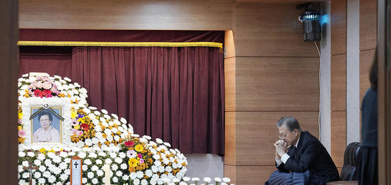 ¹®ÀçÀÎ ´ëÅë·ÉÀÌ 31ÀÏ ¿ÀÀü 10½Ã 30ºÐ ºÎ»ê ¼ö¿µ±¸ ³²Ãµ¼º´çÀÇ º»´ç¿¡¼ Àå·Ê¹Ì»ç¸¦ °®°í ¸ðÄ£ÀÎ °í(ͺ) °ÇÑ¿Á ¿©»ç¿Í À̺°ÇÑ´Ù.