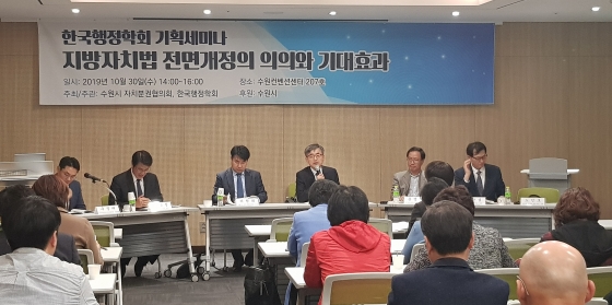 ¼ö¿ø½Ã ÀÚÄ¡ºÐ±ÇÇùÀÇȸ¡¤Çѱ¹ÇàÁ¤ÇÐȸ ÁÖÃÖ·Î 10¿ù 30ÀÏ ¼ö¿øÄÁº¥¼Ç¼¾ÅÍ È¸Àǽǿ¡¼ ¡®Áö¹æÀÚÄ¡¹ý Àü¸é°³Á¤ÀÇ ÀÇÀÇ¿Í ±â´ëÈ¿°ú¡¯¸¦ ÁÖÁ¦·Î ¿¸° ±âȹ¼¼¹Ì³ª¿¡¼ ¹ßÁ¦ÇÑ ±¸Á¤Å Àü±¹½ÃÀ屺¼ö±¸Ã»ÀåÇùÀÇȸ Àü¹®À§¿øÀº ¡°Áö¹æÀÚÄ¡¹ý ÀüºÎ°³Á¤¾ÈÀÌ Åë°úµÇ¸é ½ÇÁúÀûÀÎ ÁÖ¹ÎÂü¿©Á¦µµ°¡ È®´ëµÉ °Í¡±À̶ó°í ¸»Çß´Ù.