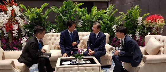 ¾Æº£ ½ÅÁ¶(äÌÛÃòÌß²) ÀϺ» ÃѸ®¿Í ¹®ÀçÀÎ ´ëÅë·ÉÀÌ Å±¹ ¹æÄÛ¿¡¼ ¿¸° µ¿³²¾Æ½Ã¾Æ±¹°¡¿¬ÇÕ(ASEAN¡¤¾Æ¼¼¾È) °ü·Ã Á¤»óȸÀÇ Âü¼® µµÁß ¹® ´ëÅë·É°ú ¸¸³ª ¾à 10ºÐ °£ ´ëȸ¦ ³ª´³´Ù.