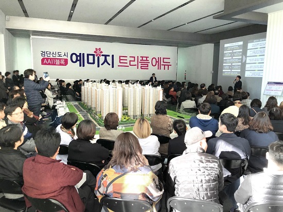 ÇÑÆí ±Ý¼º¹éÁ¶´Â ¿À´Â 15ÀÏ ¡®°Ë´Ü½Åµµ½Ã ¿¹¹ÌÁö Æ®¸®Çÿ¡µà¡¯ÀÇ ¸ðµ¨ÇϿ콺¸¦ ¿ÀÇÂÇÏ°í º»°Ý ºÐ¾çÀ» ½ÃÀÛÇÑ´Ù. °Ë´Ü½Åµµ½Ã AA11ºí·Ï¿¡ ¼±º¸ÀÌ´Â ÀÌ ´ÜÁö´Â ÁöÇÏ 2Ãþ~Áö»ó 25Ãþ, 14°³ µ¿, Àü¿ë¸éÀû 76~102§³ ÃÑ 1,249°¡±¸ ±Ô¸ð´Ù.