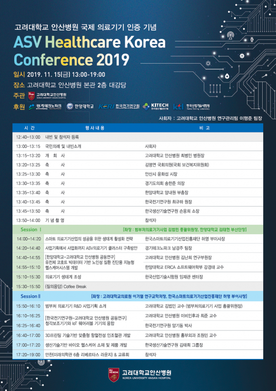 15ÀÏ ÁøÇàÇÏ´Â ÄÁÆÛ·±½º¿¡¼´Â °í·Á´ëÇб³¾È»êº´¿ø, °æ±âÅ×Å©³ëÆÄÅ©, ÇѾç´ëÇб³ ¿¡¸®Ä«Ä·ÆÛ½º, Çѱ¹Àü±â¿¬±¸¿ø, Çѱ¹»ê¾÷±â¼ú½ÃÇè¿ø, Çѱ¹»ý»ê±â¼ú¿¬±¸¿ø µî ¼öµµ±Ç ÃÖ°íÀÇ ÇコÄÉ¾î »êÇп¬º´°ü Ŭ·¯½ºÅÍÀÎ ¾È»ê»çÀ̾𽺹븮(ASV, Ansan Science Valley)±â°üÀÌ Âü°¡ÇÏ¿© ÀΰøÁö´É ½Å¾à°³¹ß, ¹ÙÀÌ¿ÀÇコ IP R&D, À¯·´ MDR ¹× ±¹Á¦ ÀÇ·á±â±â ±¹Ã¥°úÁ¦ µ¿Çâ, ¸Þµð Ŭ·¯½ºÅÍ ±¸Ãà Á¦¾È µîÀ» ³íÀÇÇÏ´Â ÀÇ¹Ì ÀÖ´Â ÀÚ¸®°¡ µÉ ¿¹Á¤ÀÌ´Ù.