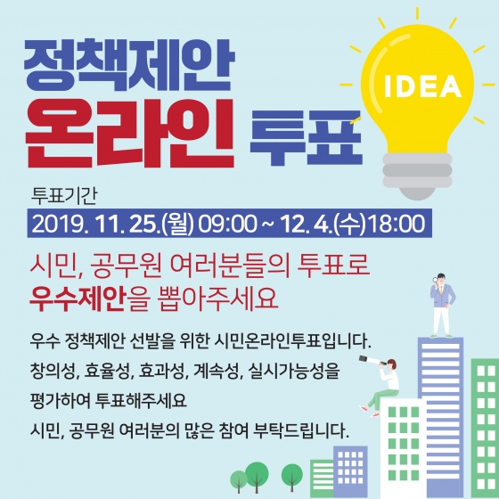 ±Ç¿µÁø ´ë±¸½ÃÀåÀº ¡°½Ã¹ÎÀÌ Á¦¾ÈÇÏ°í ½Ã¹ÎÀÌ Æò°¡ÇØ °áÁ¤ÇÏ¸é ´õ ³ªÀº Á¤Ã¥ÀÌ ¸¸µé¾îÁú °ÍÀÌ´Ù¡±¸ç ¡°½Ã¹ÎÀÇ ¾ÆÀ̵ð¾î¸¦ ½Ã¹ÎÀÌ Á÷Á¢ Æò°¡ÇÏ´Â ¿Â¶óÀÎ ÅõÇ¥¿¡ ¿©·¯ºÐµéÀÇ ¸¹Àº °ü½É°ú Âü¿©¸¦ ºÎʵ叮¸ç, ¶ÇÇÑ ÁÁÀº ¾ÆÀ̵ð¾î°¡ ÀÖÀ¸¸é ¾ðÁ¦µçÁö Á¦¾ÈÇØ ÁÖ½Ç °ÍÀ» ´çºÎ µå¸°´Ù¡±°í ¸»Çß´Ù.
