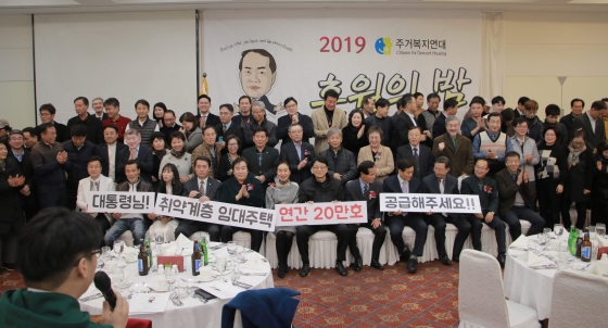 Çà»ç¿¡¼´Â Âü¼®ÇÑ È¸¿øµéÀÌ ¡°´ëÅë·É´Ô, Ãë¾à°èÃþ ÀÓ´ëÁÖÅà ¿¬°£ 20¸¸È£ °ø±ÞÇØÁÖ¼¼¿ä!¡±¶ó´Â ÇѸ¶À½ ±¸È£·Î Çà»ç ½ÃÀÛÀ» ¾Ë·ÈÀ¸¸ç ÀÌ¾î¼ 2019³â Áְź¹Áö¿¬´ë Ȱµ¿¼Ò°³, ¡°ÀÓ±æÁø·ë¡±ÃßÁø, ¡°¿µÈÀÎÀÇÁý¡± °æ°úº¸°í ¼øÀ¸·Î ÁøÇàµÆ´Ù.