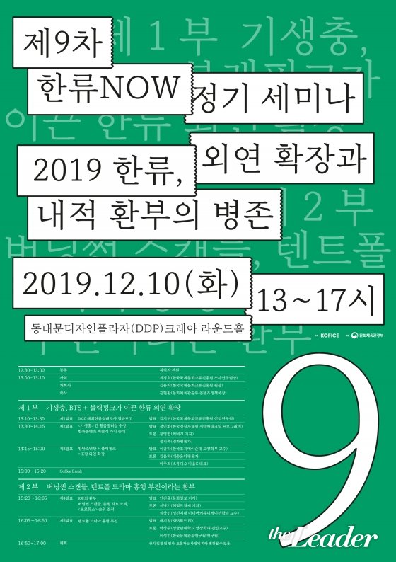 ¡®2019 ÇØ¿ÜÇÑ·ù½ÇÅÂÁ¶»ç ÁÖ¿ä°á°ú¡¯ ¹ßÇ¥·Î ½ÃÀ۵Ǵ 1ºÎ´Â ¡®±â»ýÃæ, BTS+ºí·¢ÇÎÅ©°¡ À̲ö ÇÑ·ù ¿Ü¿¬ È®À塯À̶ó´Â ºÎÁ¦·Î, ¿µÈ¿Í À½¾Ç»ê¾÷ Àü¹®°¡µéÀÇ ÀǰßÀ» °øÀ¯ÇÑ´Ù. Á¤¹ÎÈ Çѱ¹¿µ»óÀÚ·á¿ø ÇÁ·Î±×·¡¸Ó°¡ ¡®±â»ýÃæ Ä È²±ÝÁ¾·Á»ó ¼ö»ó : ÇÑ·ùÄÜÅÙÃ÷ ¿¹¼úÀû °¡Ä¡ Áõ´ë¡¯¸¦, À̱ÔŹ Çѱ¹Á¶Áö¸ÞÀ̽¼´ë ±³¾çÇкΠ±³¼ö´Â ¡®¹æÅº¼Ò³â´Ü°ú ºí·¢ÇÎÅ©¸¦ ÅëÇÑ KÆËÀÇ ¿Ü¿¬ È®Àå°ú ¹Ì·¡¡¯¸¦ ÁÖÁ¦·Î ¹ßÁ¦¿¡ ³ª¼±´Ù. Åä·ÐÆÐ³Î·Î´Â À念¿± ¾¾³×21 ±âÀÚ, Á¤Áö¿í ¿µÈÆò·Ð°¡, ±èÀ±ÇÏ ´ëÁßÀ½¾ÇÆò·Ð°¡, ¸¶ÁÖÈñ ½ºÆ©µð¿À ¸¶À½C ´ëÇ¥°¡ Âü¿©ÇÒ ¿¹Á¤ÀÌ´Ù.