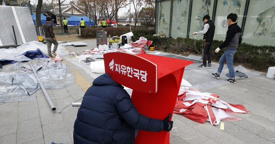 Ȳ±³¾È ÀÚÀ¯Çѱ¹´ç ´ëÇ¥°¡ ¼¿ï Á¾·Î±¸ û¿Í´ë »ç¶ûä ¾Õ¿¡ ¼³Ä¡µÈ õ¸·³ó¼ºÀåÀ» 14ÀÏ ¸¸¿¡ ö°ÅÇß´Ù.