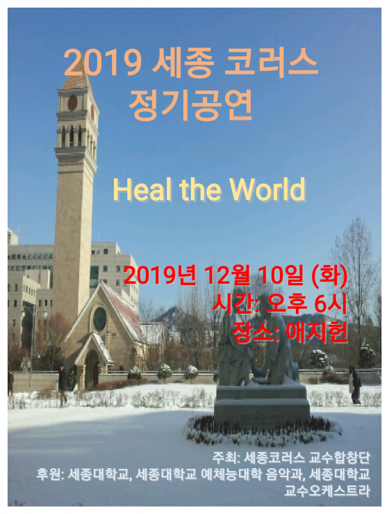 ¡®Heal the World¡¯¶ó´Â Á¦¸ñÀ¸·Î ÁøÇàµÇ´Â À̳¯ °ø¿¬¿¡´Â ¡ãZion hörtdie Wächtersingen, ¡ãLaudate Dominum, Agnus Dei ¡ã¹°»õ ¡ã³»¸¾ÀÇ °¹° ¡ãWaltz No.2 ¡ãû»ê¿¡ »ì¸®¶ó ¡ãA Whole New World ¡ãI Just Can¡¯t Wait to Be King ¡ãHeal the World µî ´Ù¾çÇÑ ³ë·¡µéÀÌ ¼±º¸ÀÏ ¿¹Á¤ÀÌ´Ù.