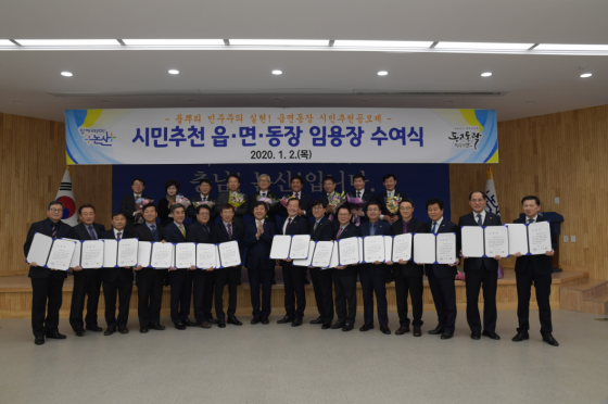 ³í»ê½Ã(½ÃÀå Ȳ¸í¼±)´Â 2ÀÏ À¾¸éµ¿Àå½Ã¹ÎÃßõÁ¦·Î ¼±ÃâµÈ 15¸íÀÇ »ç¹«°ü¿¡°Ô ÀÓ¸íÀåÀ» ¼ö¿©Çß´Ù.