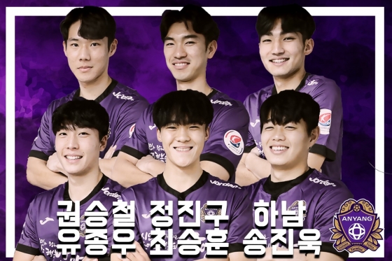 K¸®±×2 FC¾È¾ç(±¸´ÜÁÖ ÃÖ´ëÈ£ ¾È¾ç½ÃÀå)ÀÌ ÀÚÀ¯¼±¹ß ½ÅÀμ±¼ö·Î DF ÃÖ½ÂÈÆ, FW À¯Á¾¿ì, FW Çϳ², MF ¼ÛÁø¿í, MF ±Ç½Âö, DF Á¤Áø±¸ µî 6¸íÀ» ¿µÀÔÇß´Ù.