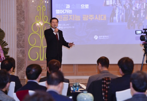 À̿뼷 ±¤ÁÖ±¤¿ª½ÃÀåÀÌ 15ÀÏ È£ÅÚ ¹«µîÆÄÅ©¿¡¼ ¿¸° Á¦205ȸ »êÇÐÇùµ¿Æ÷·³¿¡¼ Áö¿ª±â¾÷ÀÎ, Çаè, À¯°ü±â°ü °ü°èÀÚ µî 100¿© ¸íÀÌ Âü¼®ÇÑ °¡¿îµ¥ ¡®Çõ½Å°ú ¼ÒÅëÀ¸·Î ¿¾î°¡´Â ÀΰøÁö´É ±¤Áֽô롯¶ó´Â ÁÖÁ¦·Î ½Å³â Ưº° °¿¬À» Çß´Ù.