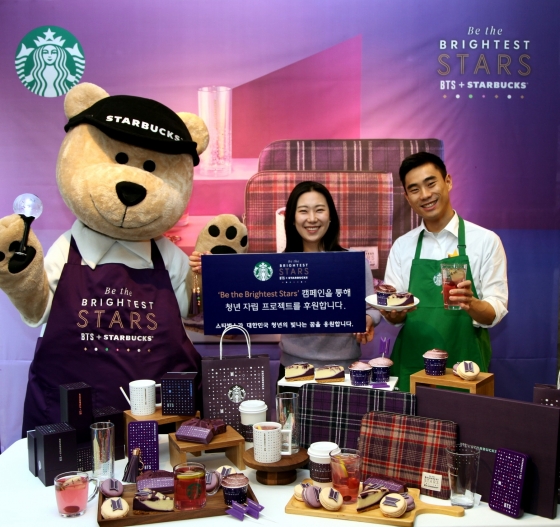 À̹ø Ä·ÆäÀο¡¼ ½ºÅ¸¹÷½º´Â º¸¶ó »ö»óÀÌ µ¸º¸ÀÌ´Â À½·áÀÎ ¡®ºí·ç¹Ö ÆÛÇà ¹ð¼î¡¯¸¦ ºñ·ÔÇØ ¡®ÆÛÇà ½ºÅ¸ ÄÅ ÄÉÀÌÅ©¡¯, ¡®ÆÛÇà ½ºÅ¸ ÆÄ¿îµå¡¯ µî Ǫµå 5Á¾°ú ¸Ó±×, ±Û¶ó½º, ÆÄ¿ìÄ¡, ŰüÀÎ µîÀÇ MD »óǰ 6Á¾À» ÇÔ²² Ãâ½ÃÇÑ´Ù.