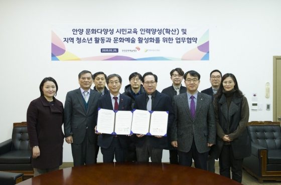 ¾È¾ç¹®È¿¹¼úÀç´Ü(ÀÌ»çÀå ÃÖ´ëÈ£, ´ëÇ¥ÀÌ»ç ¹ÚÀοÁ)°ú ¾È¾ç½Ãû¼Ò³âÀç´Ü(´ëÇ¥ÀÌ»ç ±â±æ¿î)ÀÌ 2020³â 2¿ù 20ÀÏ ¡®¾È¾ç ¹®È´Ù¾ç¼º ½Ã¹Î±³À° Àη¾缺(È®»ê) ¹× Áö¿ª û¼Ò³â Ȱµ¿°ú ¹®È¿¹¼ú Ȱ¼ºÈ¡¯¸¦ À§ÇÑ ¾÷¹«Çù¾àÀ» ü°áÇß´Ù.