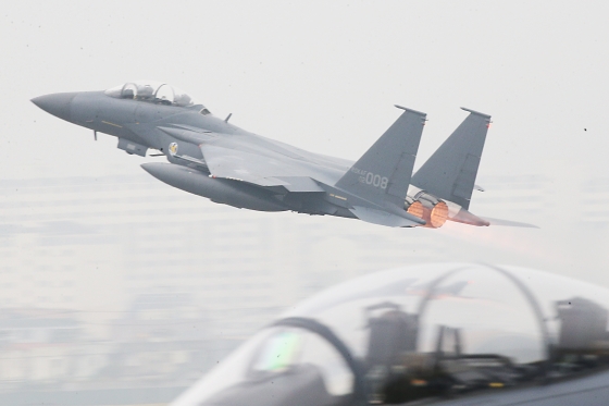 | Áö³ÇØ ´ë±¸ °ø±º±âÁö¿¡¼ ¿¸° 'Á¦71Áֳ⠱¹±ºÀÇ ³¯' Çà»ç¿¡¼ F-15K ÀüÅõ±â°¡ ÀÌ·úÇϰí ÀÖ´Ù. / »çÁø = ´º½º1 |