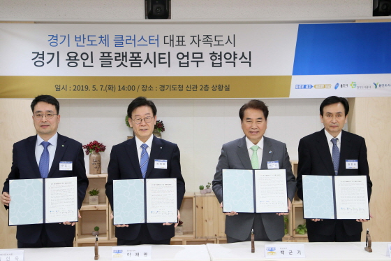 | ÀÌÇå¿í °æ±âµµ½Ã°ø»ç »çÀå, ÀÌÀç¸í °æ±âµµÁö»ç, ¹é±º±â ¿ëÀνÃÀå, ±èÇѼ· ¿ëÀεµ½Ã°ø»ç »çÀå(¿ÞÂʺÎÅÍ)ÀÌ Áö³ÇØ 5¿ù 7ÀÏ °æ±âµµÃ»¿¡¼ ¿ëÀÎÇ÷§Æû½ÃƼ Á¶¼ºÀ» À§ÇÑ ¾çÇØ°¢¼¸¦ ü°áÇÑ µÚ ±â³äÃÔ¿µÀ» Çϰí ÀÖ´Ù./»çÁø=°æ±âµµ Á¦°ø |