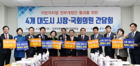 ¢º±×°£ ¿ëÀÎ, ¼ö¿ø, °í¾ç, â¿ø µî 4°³ ´ëµµ½Ã´Â Áö¹æÀÚÄ¡¹ý ÀüºÎ°³Á¤¾È ±¹È¸Åë°ú¸¦ À§ÇØ ´Ù°¢µµ·Î ³ë·ÂÇØ¿ÔÀ¸³ª, ¹ý¾ÈÀº ÀÛ³â 3¿ù ±¹È¸¿¡ Á¦ÃâµÈ ÀÌ·¡ Çà¾ÈÀ§ ¹ý¾È¼ÒÀ§¿¡ °è·ù ÁßÀÌ´Ù. 20´ë ±¹È¸ Àӱ⠳»¿¡ ¹ý¾ÈÀÌ Åë°úµÇÁö ¾ÊÀ¸¸é ÀӱⰡ ³¡³²°ú µ¿½Ã¿¡ ÀÚµ¿ Æó±âµÈ´Ù. 4°³ ´ëµµ½Ã ½ÃÀåµéÀº 20´ë ±¹È¸¿¡¼ ¹ý¾ÈÀÌ Ã³¸®µÉ ¼ö ÀÖµµ·Ï Áö¿ª ±¹È¸ÀÇ¿øµé¿¡ Áö¿øÀ» ¿äûÇß´Ù.