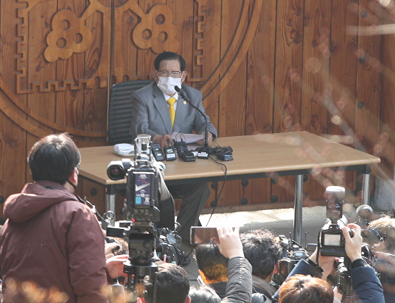 | À̸¸Èñ ½ÅõÁö¿¹¼ö±³ Áõ°ÅÀ帷¼ºÀü(ÀÌÇÏ ½ÅõÁö) ÃÑȸÀåÀÌ 2ÀÏ ¿ÀÈÄ °æ±â °¡Æò ½ÅõÁö ÆòÈÀÇ ±ÃÀü¿¡¼ Äڷγª¹ÙÀÌ·¯½º °¨¿°Áõ(Äڷγª19) »çÅÂ¿Í °ü·ÃÇØ °ø½Ä ÀÔÀåÀ» ¹àÈ÷´Â ±âÀÚȸ°ßÀ» Çϰí ÀÖ´Ù./»çÁø=´º½º1 |