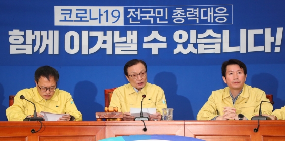 | ¡ãÀÌÇØÂù(°¡¿îµ¥) ´õºÒ¾î¹ÎÁÖ´ç ´ëÇ¥°¡ 4ÀÏ ¼¿ï ¿©Àǵµ ±¹È¸¿¡¼ ¿¸° ´õºÒ¾î¹ÎÁÖ´ç ÃÖ°íÀ§¿øÈ¸ÀÇ¿¡ Âü¼®ÇØ Çö¾È°ü·Ã ¹ß¾ðÀ» Çϰí ÀÖ´Ù. /»çÁø=´º½Ã½º |