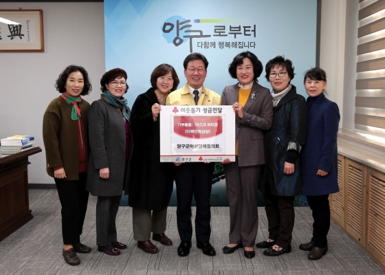 ¾ç±¸±º¿©¼º´ÜüÇùÀÇȸ(ȸÀå ±èÁ¤¹Ì)´Â 6ÀÏ ±ºÃ»À» ¹æ¹®ÇØ ¾î·Á¿î ÀÌ¿ôµéÀ» À§ÇØ »ç¿ëÇØ´Þ¶ó¸ç ¸¶½ºÅ© 800Àå(200¸¸ ¿ø »ó´ç)À» Á¶Àι¬ ±º¼ö¿¡°Ô ±âŹÇß´Ù.